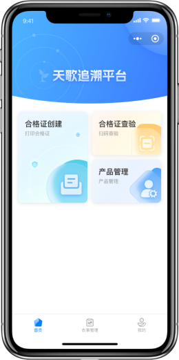 天歌農產品質量安全追溯信息平臺(https://zs.aiccsm.com)是由我司自主研發,以”提升政府智慧監管能力,規范主體生產經營行為,增強社會公眾消費信心”為宗旨,為各級農產品質量安全監管機構、檢測機構、執法機構以及廣大農產品生產經營者、社會公眾提供信息化服務。 服務政府:為政療監管提供信息化管理手段,通過對追溯、監管、監測、執法基礎數據的集中管理,實現政府監管的移動化、智能化、可視化,提升政府科學決策、風險預警和應急指揮能力。 服務企業:為企業搭建統一的內外追溯平臺,規范企業生產經營活動,實現農產品”來源可追溯、流向可追蹤、風險可預警、產品可召回、責任可追究。 服務公眾:為公眾提供追溯統一查詢入口,快捷和實時查詢農產品的追溯信息。